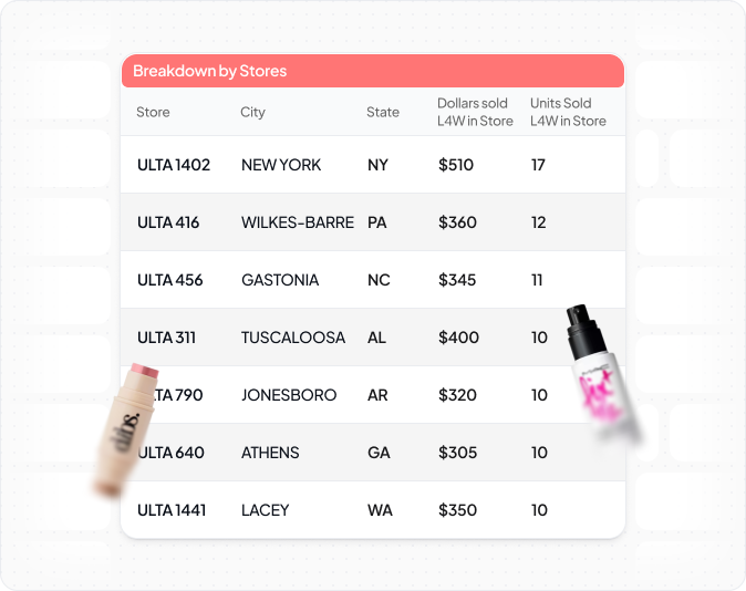Discover the retail analytics platform built for beauty brands selling through retail stores, unifying sales, inventory, and promotional data in one intuitive system.